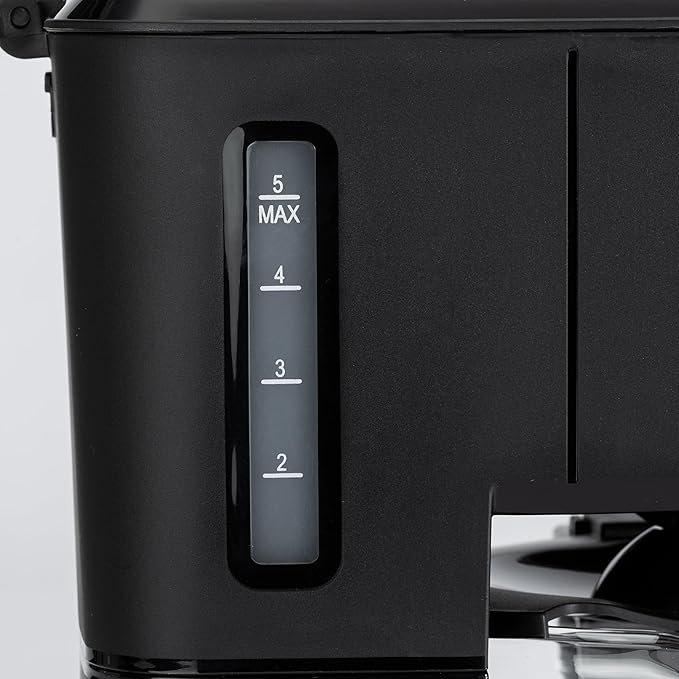 Start your day with fresh coffee brewed exactly the way you like it. This compact drip coffee maker features a 0.8-quart (5-cup) capacity, auto-shutoff for safety, and a removable filter basket for easy cleanup, all wrapped in a modern matte black design. Upgrade your small-space kitchen or dorm setup — click to check availability and latest pricing.