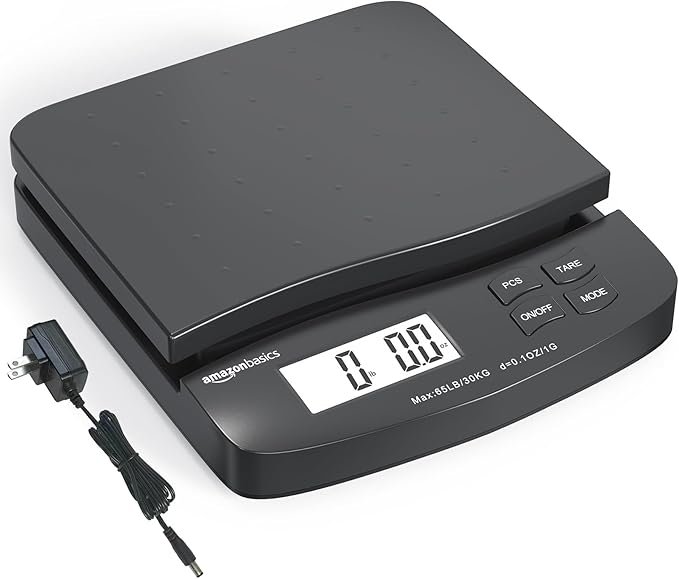 Effortlessly weigh packages and parcels with the durable 65 lb capacity Amazon Basics digital postal scale, featuring ultra-precise 0.1 oz (1 g) readability and a large backlit LCD display for clear results. Equipped with a tare/count function, it resets to zero when containers are used and even helps count multiple items quickly. Comes with AC adapter and manual operation, making it an ideal choice for home shipping stations, small businesses, or frequent e-commerce sellers—click to check current pricing and availability.